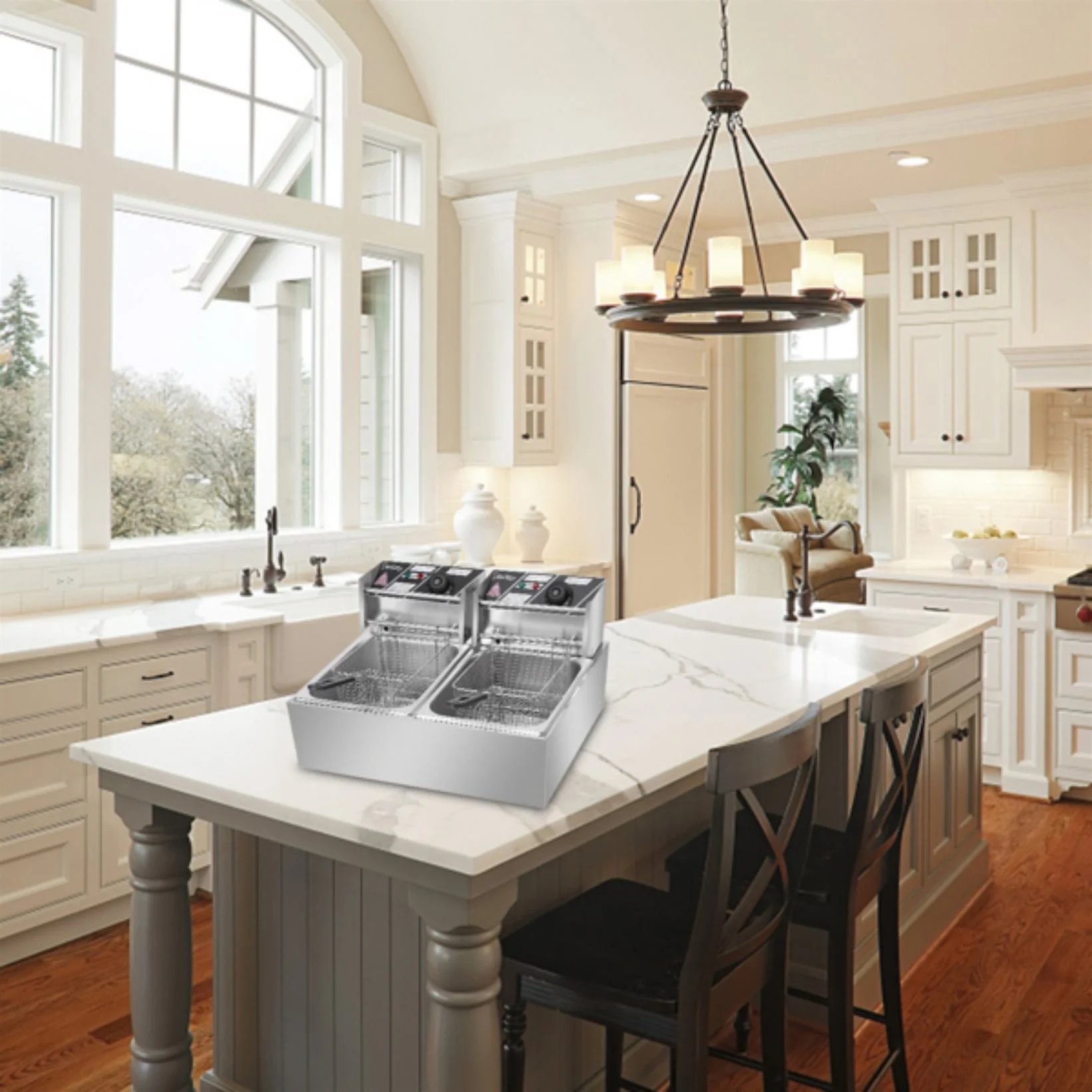 Diversify Your Cooking Experience: With two separate oil tanks, this electric deep fryer allow you fry different types of foos individually and maintain distinct flavors, easy food removal. Perfect for delis, concession stands, snack bars, and parties. More Safe and Practical Design: Come with Covers, preventing oil from splattering or spilling everywhere. Extended cool-touch handle prevents scalding of your hands. Baskets includes hooks, hang the basket on the bar for easy, mess-free draining. Removable oil basin for easy cleanup. Quick and Crispy: Each tank of this commercial electric fryer features a 2500-watt heating element that quickly heats the oil to your desired temperature. This means you can cook you food quickly and thoroughly Easy to Operate: 2 Temperature knobs for selecting temperature separately simplifies the operation, easily make delicious food no matter you are a professional or a beginner. Convenient to Clean: All components of this fryer are easy to lift out, including the oil tanks. And the heating tubes can be flip up for easy cleaning after every use. What’s more, the stainless steel exterior is a breeze to wipe down.