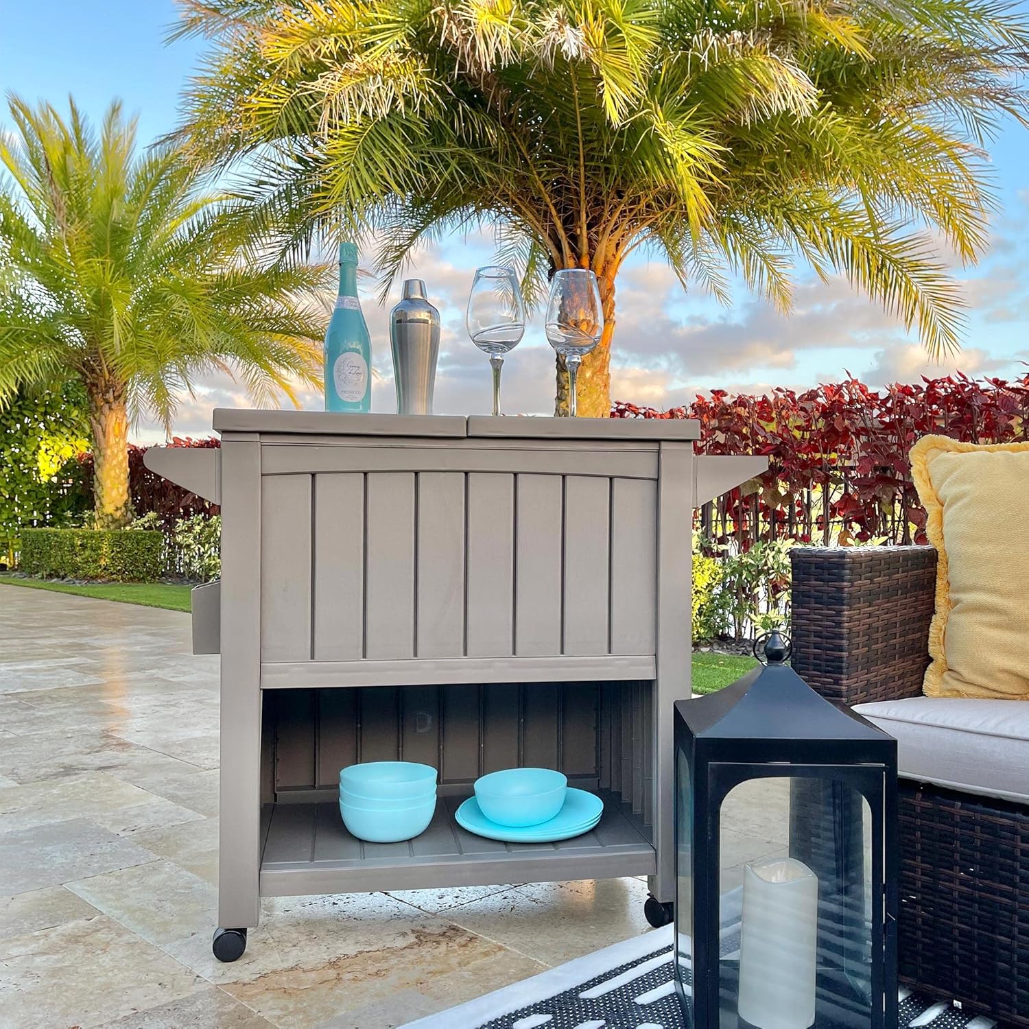 - QUICK ASSEMBLY- This outdoor beverage cart is made from recyclable and durable resin for easy maintenance; Simply follow the included instructions for an easy installation.
