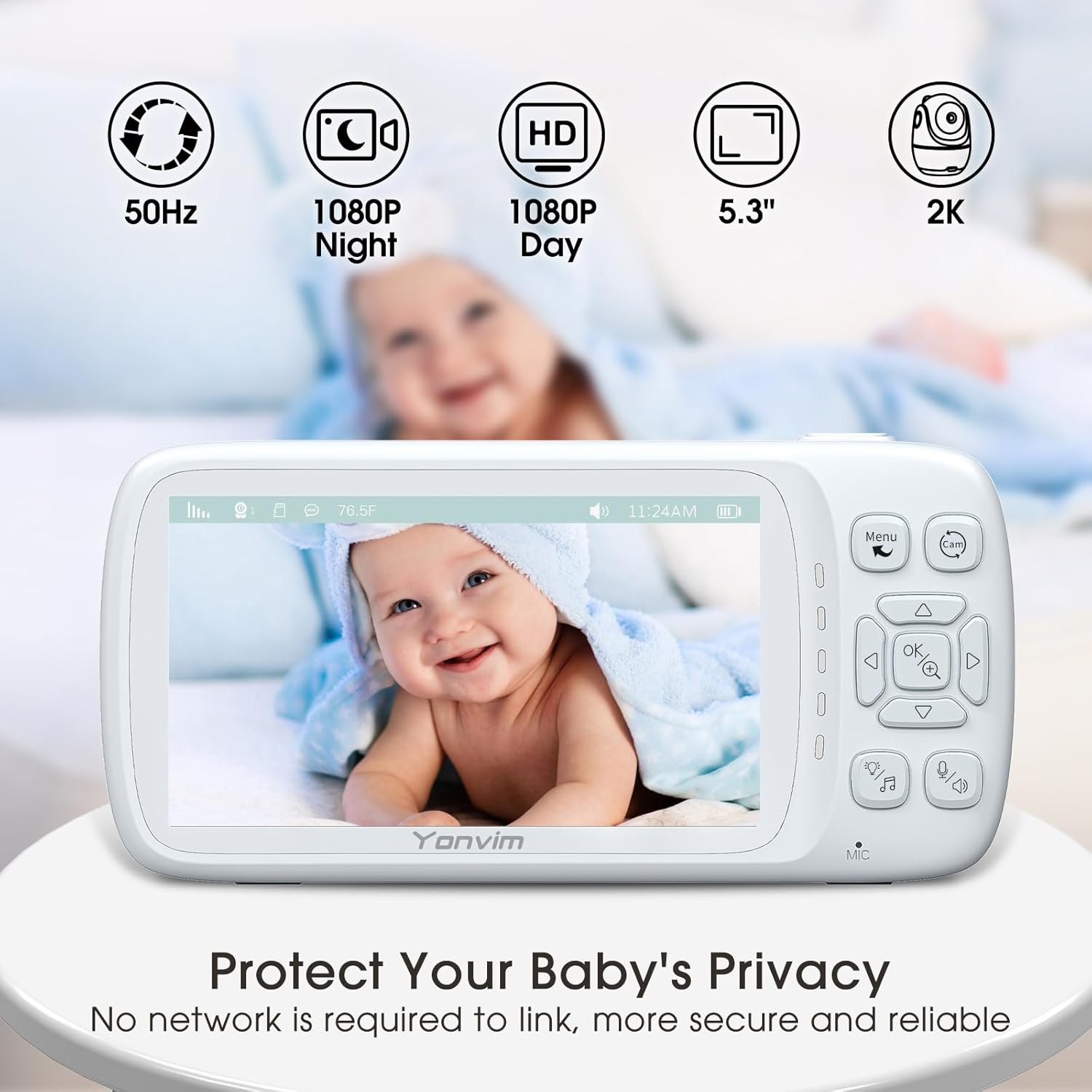 - SUPERIOR IMAGE QUALITY: Experience crystal-clear video with 1080P HD resolution and a 5.3-inch display, this baby monitor captures every detail of your baby’s movements and expressions, even in low-light conditions, thanks to advanced night vision of baby camera.