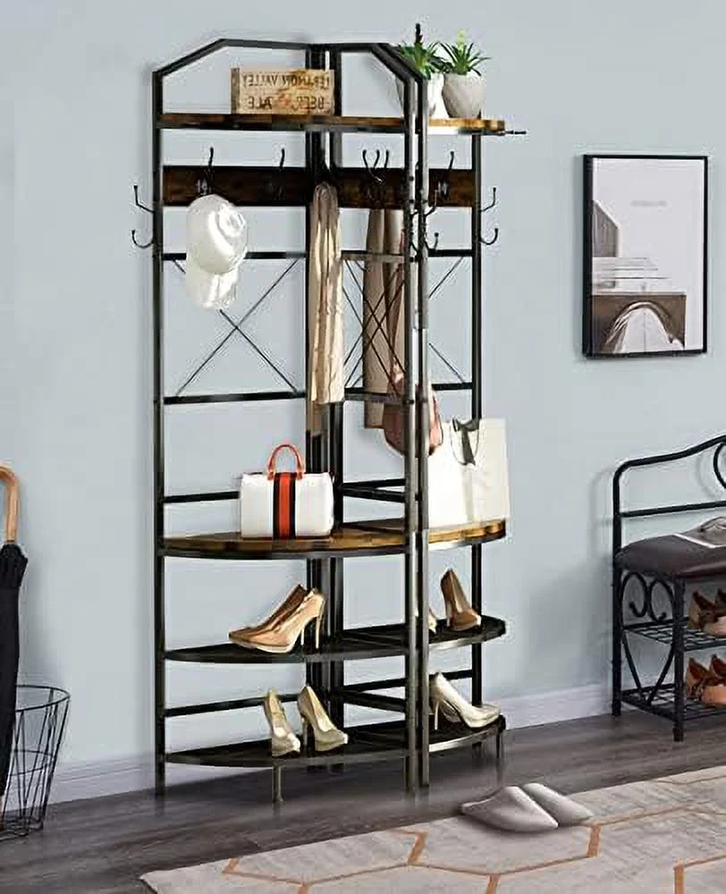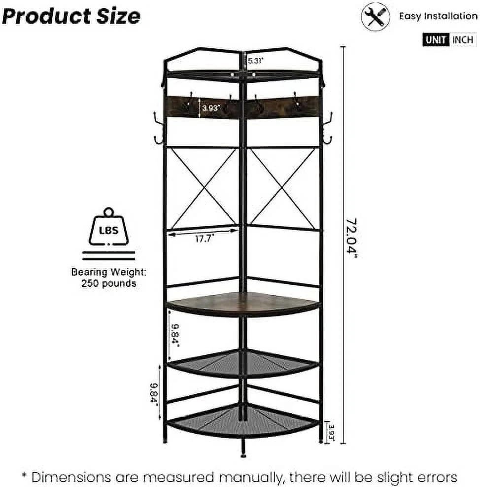 Mdf [Multi-Functional – Entryway Coat Rack]: Are you looking for practical hall tree to put in your entrance? This 3 in 1 hall tree is suitable, which combines with shoe rack, top and coat rack. Bottom for shoes(5-6pairs), top for hats and scarf, photos, hooks for keys and umbrella, very convenient to put things when guests coming. [Space Saving – Entryway Coat Rack]: This corner coat rack provides an perfect structure for creating extra to live. Hall tree with design sector structure, fits very well in small spaces, not matter put one in corner or combine two in entryway, all easy to and maximize your limited space. [Industrial & Vintage – Entryway Coat Rack]: Entryway cloth and shoe rack made of rustic brown MDF board and black metal mesh , it is very and premium to use in long time, perfect complement to matches your industrial or farmhouse . Suitable to be put in entryway, hall, foyer, entrance, hallway, bedroom, mudroom or office etc. [Stable – Entryway Coat Rack]: Consider safty using experience, this corner cloth rack special design two anti-toppling screws, you can install them at the hidden space. Except that, entryway organizer also design with 3 adjustable legs, which make it can free-stand stable on uneven ground, protect your floor. [Easy to Assemble – Entryway Coat Rack]: With easy-to-understand manuels, you can quickly install this hall tree with in 20-30mins. Its deminsions 17.72″*17.72″*72.05″(L*W*H), Whole entryway coat rack shoe bench can load weight 120lbs.