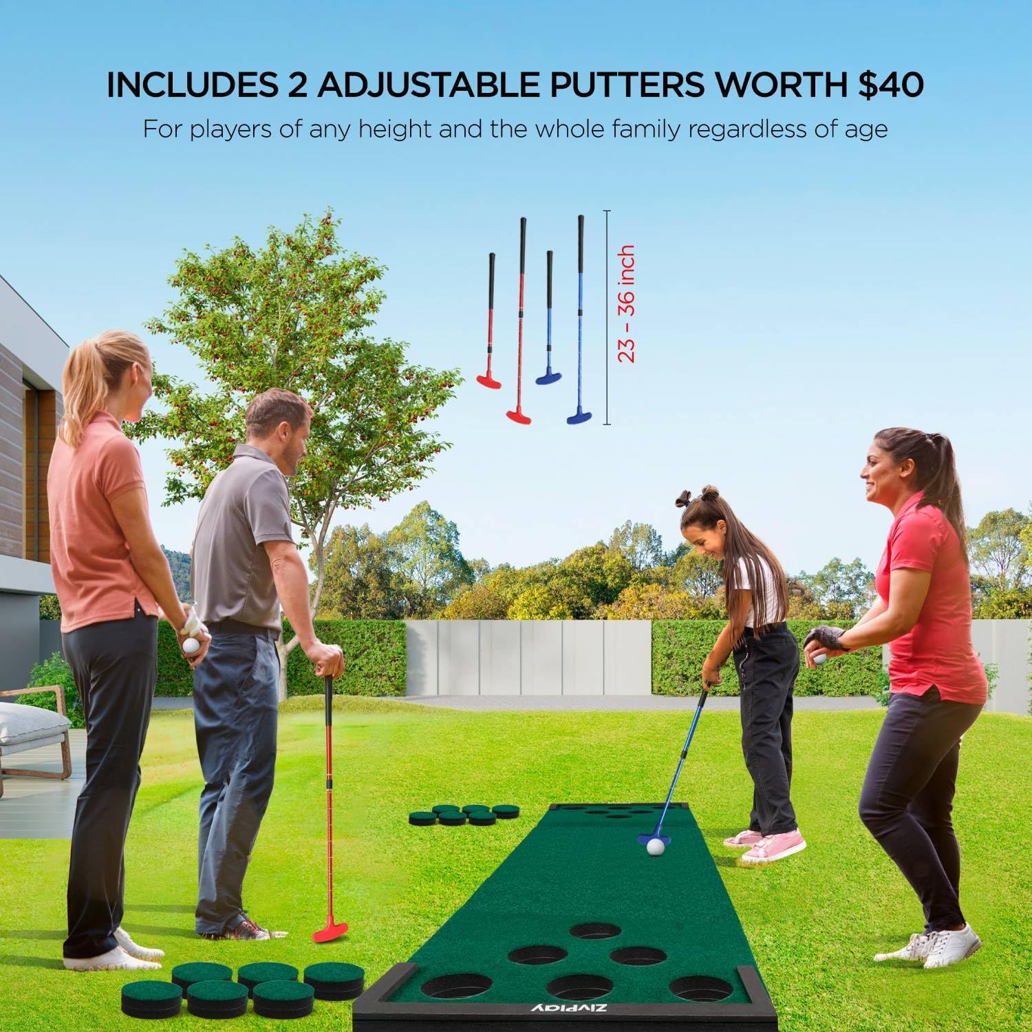 - TWO HEIGHT ADJUSTABLE PUTTER worth $40 with 23 to 36 inches height, suits both right and left handed players. Also, includes 6 golf balls.