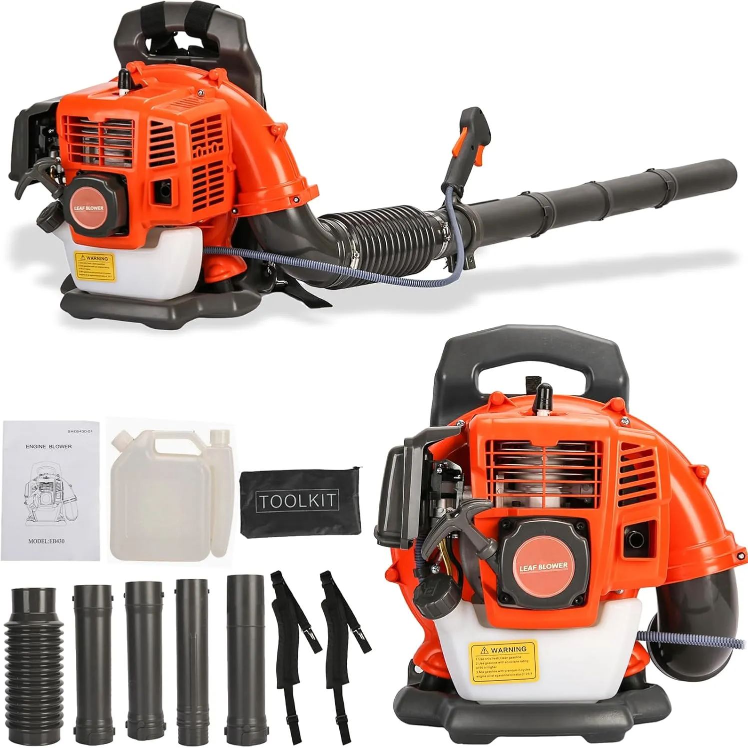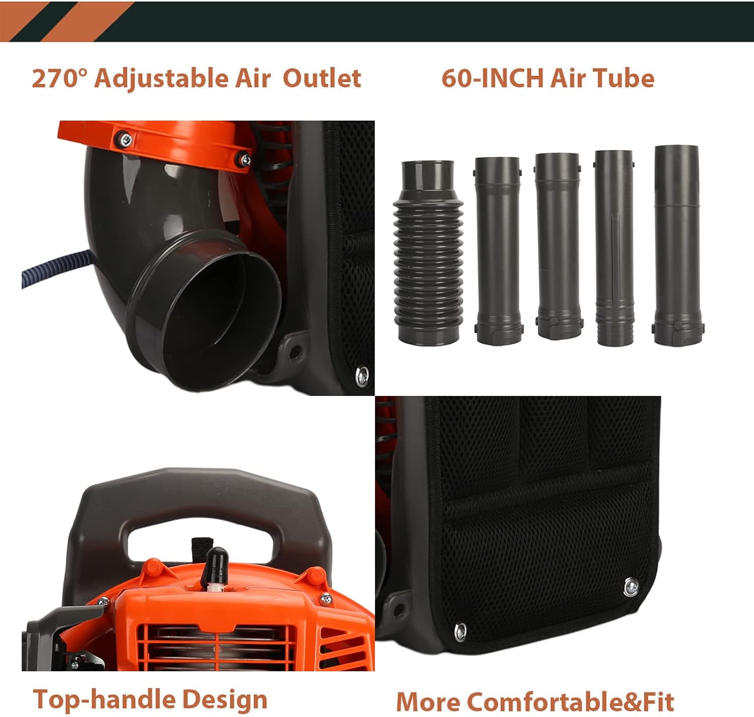 - ??Ergonomic Design??Backpack style and gas powered design makes it more ergonomic and powerful than electric and handheld blower. Press the trigger to control the blowing speed, the fan can be adjusted to 6800rpm. You can control the cruise handle to maintain a steady blow speed and reduce the pressure on your arms.
